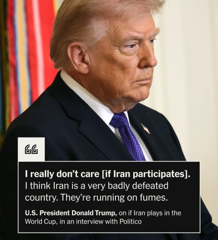 北京时间3月4日,距离美加墨世界杯开幕仅剩99天。因为与美国的冲突,伊朗男足是否参赛依然是巨大疑问。而来自外媒Politico的消息,美国总统特朗普也在当地时间周二早上接受独家采访时,被问到了伊朗男足是否参加世界杯这一话题。